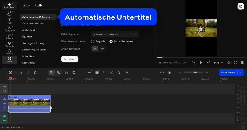 Nutzen Sie die KI-Funktionen zur Geräuschentfernung, automatischen Untertitelung oder Bewegungsverfolgung. So erhalten Sie hochwertige Ergebnisse, wenn Sie Instagram Videos erstellen, selbst mit einfachen Aufnahmen.