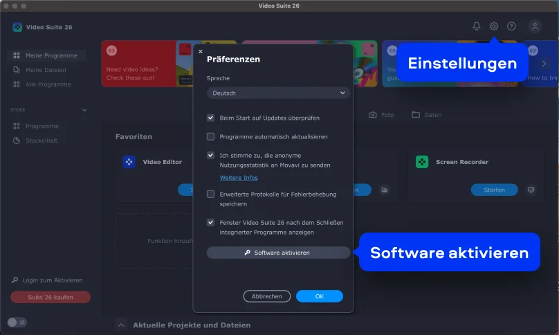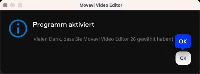 Starten Sie Movavi Video Suite neu. Dadurch werden die Video Suite und alle zugehörigen Programme aktiviert.