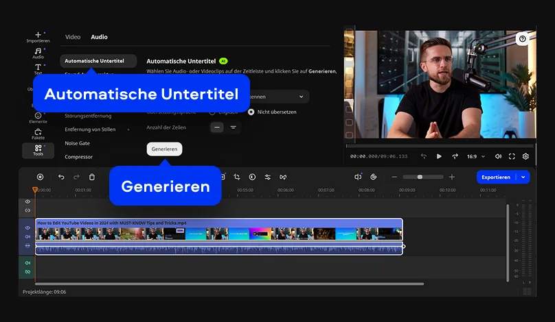 Ein-Klick-KI-Tools: automatische Untertitel, Rauschunterdrückung und mehr