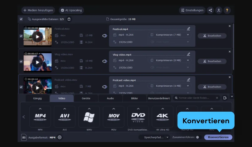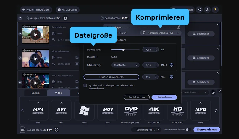Ein gewisser Qualitätsverlust kann vorkommen, vor allem wenn die Datei stark verkleinert wird. Wie deutlich dieser Unterschied ausfällt, hängt von den gewählten Einstellungen ab. Wenn Sie die Balance zwischen Dateigröße und Bildqualität sauber steuern möchten, lohnt sich ein Tool mit anpassbarer Bitrate und klaren Qualitätsoptionen.
