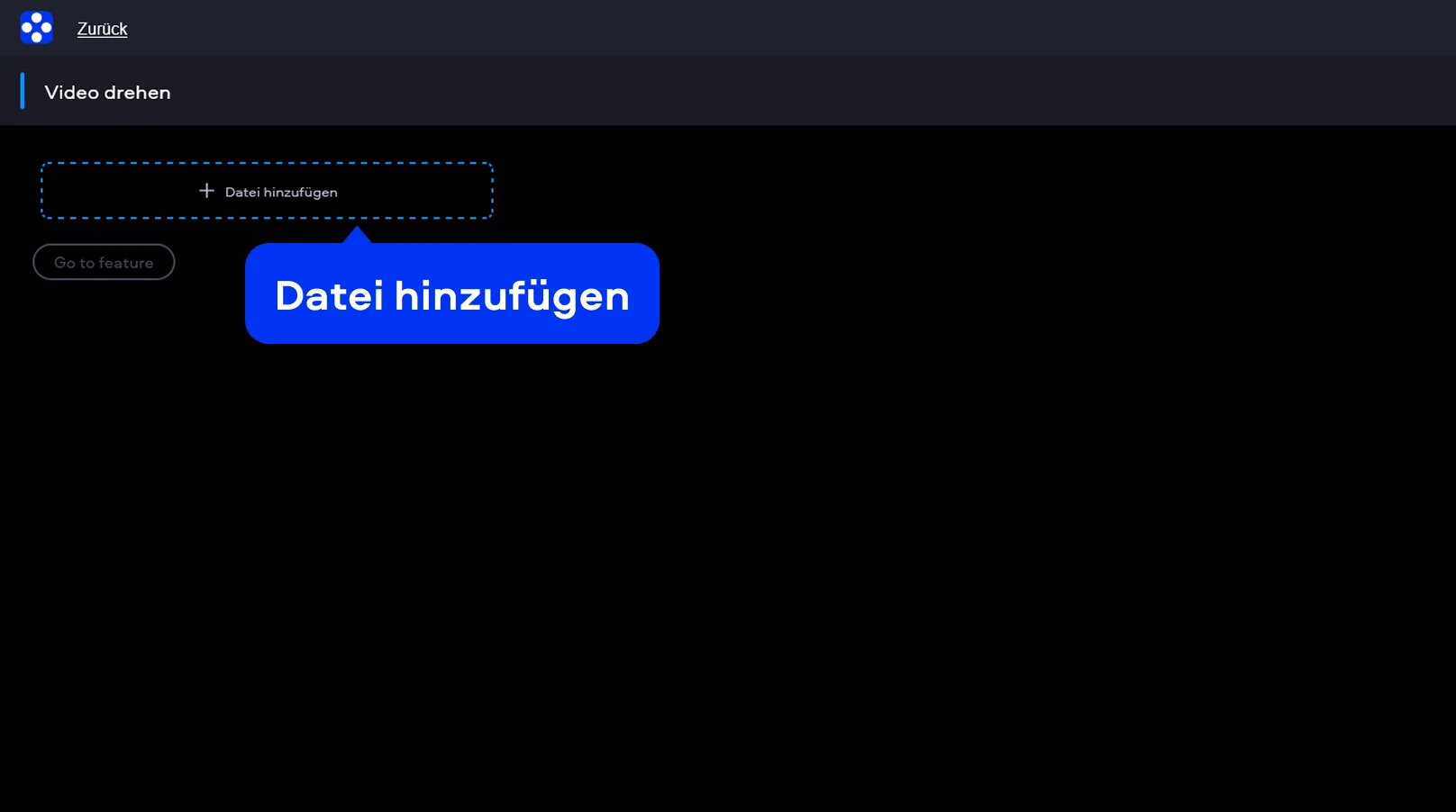 Klicken Sie auf Datei hinzufügen und laden Sie Ihr Video in die App. Nach dem Upload öffnet sich direkt der Arbeitsbereich mit Vorschau. So sehen Sie sofort, wie der Clip aktuell ausgerichtet ist und können direkt mit der Korrektur starten.
