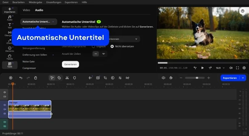 Ein moderner YouTube Video Editor sollte mehr können als nur Schneiden. KI-gestützte Funktionen wie automatische Rauschunterdrückung, Pausenerkennung oder Untertitelgenerierung sind unverzichtbar, wenn Sie häufig aufnehmen – besonders mit dem Smartphone oder ohne professionelles Mikrofon. So bleibt Ihr Content klar, flüssig und verständlich.